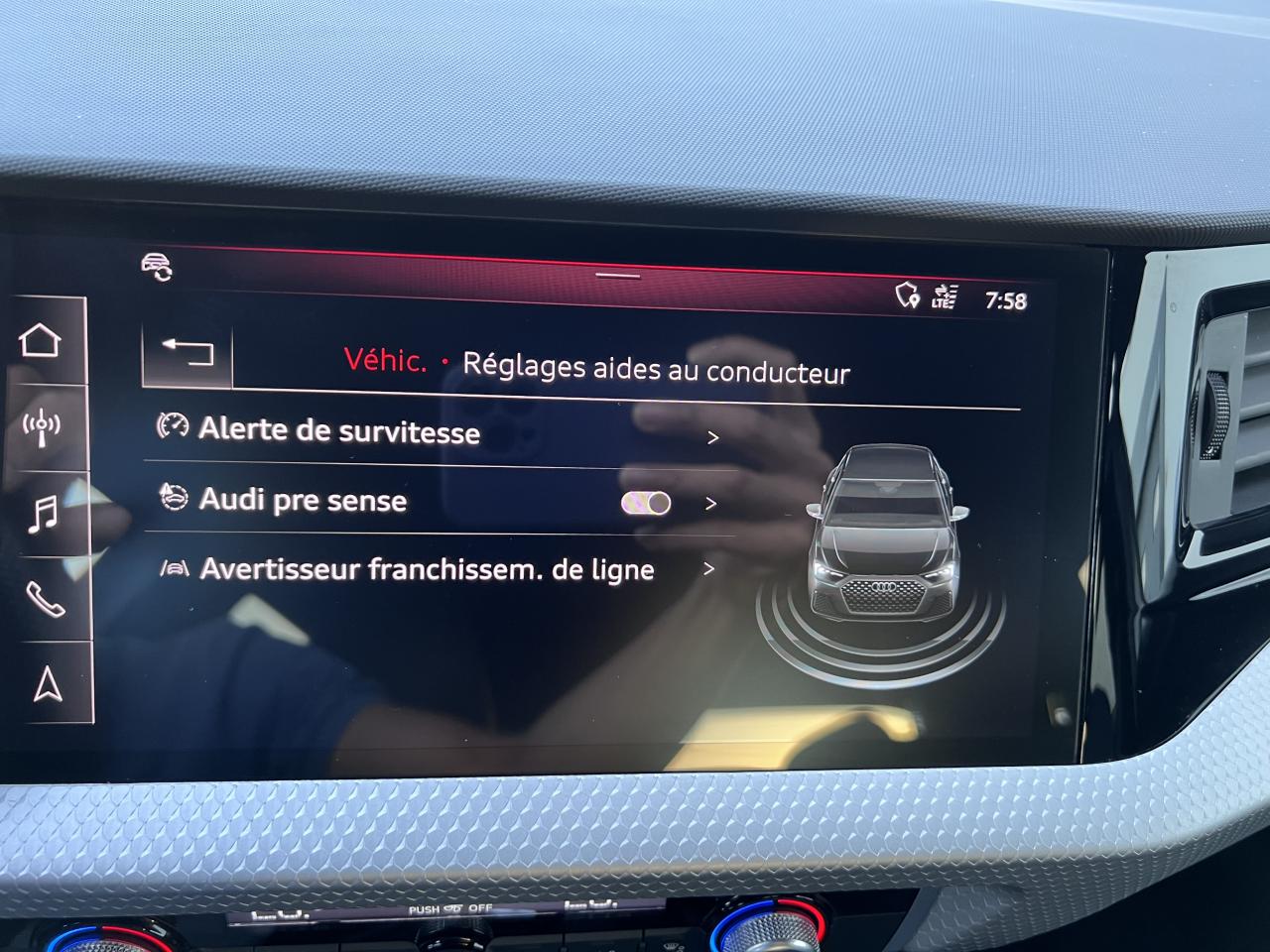 6 haut-parleurs passifs ; 4 à l’avant avec 40 watts et 2 à l’arrière avec 20 wattsAffichage du contrôle de la pression des pneumatiquesAirbags latéraux à l'avant et système d'airbags de têteAppel d’urgence Audi connectApplications décoratives étendues de l’écran couleur MMI touch jusqu’aux triangles de portières avant façon verre en noirApplications décoratives étendues en laque quartz gris structuréApplications décoratives étendues sur le tableau de bord façon verre en noirApplications décoratives structure polygone en laque diamant Gris ArgentAssistant de démarrage en côteAudi connect sécurité et assistance en ligneAudi Drive SelectAudi parking system à l'arrièreAudi pre sense frontAudi smartphone interfaceAudi virtual cockpitAvertisseur de franchissement de ligneBadges S line sur les ailes avantBanquette AR fractionnable 60/40 ou entièrement rabattableBarrette du diffuseur arrière Gris Platine matBas de caisse couleur carrosserieBecquet de pavillon S lineBoîtiers de rétroviseurs extérieurs couleur carrosserie sauf teinte Blanc CortinaCalandre en Noir TitaneChâssis standardCiel de pavillon en tissu noirClé à fréquence radioClignotants LED intégrés dans les rétroviseursClimatisation automatique confort 2 zonesContrôle électronique de stabilité (ESC)Détecteur de pluie et de luminositéDétection d'occupation des sièges et du port de la ceinture de sécuritéDiffuseur à l’arrière en Noir Titane matEclairage intérieurEcrous de roues antivolEncadrement de calandre en Argent Aluminium matEncadrement des prises d’air latérales en Noir TitaneEssuie vitre AR avec intermittenceFeux de brouillard ARGrille de diffuseur arrière Noir Titane matInterface BluetoothJantes en aluminium coulé style 5 branches doubles (style S), partiellement polies, 7,5 J x 17" avec pneus 215/45 R 17Lame de becquet avant en Gris Platine matLève-vitres électriques à l'avant et à l'arrièreLimiteur de vitesseMMI Radio PlusMoulures de seuil avec insert en aluminium à l’avantPare-brise en verre athermique avec bande grisePare-chocs avant et arrière S LinePédalier et repose-piedPeinture vernie Blanc CortinaPhares et feux arrière à LED avec clignotants dynamiques à l'arrièrePoignée de frein à main en plastiquePrises d’air latérales à l’avant en noir mat grainéRéception radio numérique : réception des signaux DAB, DAB+ et DMB audioRégulateur de vitesseRétroviseur intérieur jour/nuit automatiqueRétroviseurs extérieurs électriques et dégivrants incluant buses de lave-glaces dégivrantesSélecteur de vitesses en cuir perforéSet de réparations pour pneusSièges avant réglables en hauteurSièges Sport cuir/tissu avec surpiqûre contrastée et estampillage S sur le dossier des sièges avantSticker quatre anneaux au bas des portières arrièreStyle aluminium à l’intérieurSurpiqûres contrastées en argent finSystème de fixation ISOFIX pour siège enfant aux places passager avant et latérales arrièreSystème Stop & StartTapis complémentaires à l’avant et à l’arrière avec surpiqûres contrastéesTapis de sol avant et arrièreTrousse de secours avec triangle de présignalisationVitres athermiquesVolant 3 branches multifonction plus en cuir