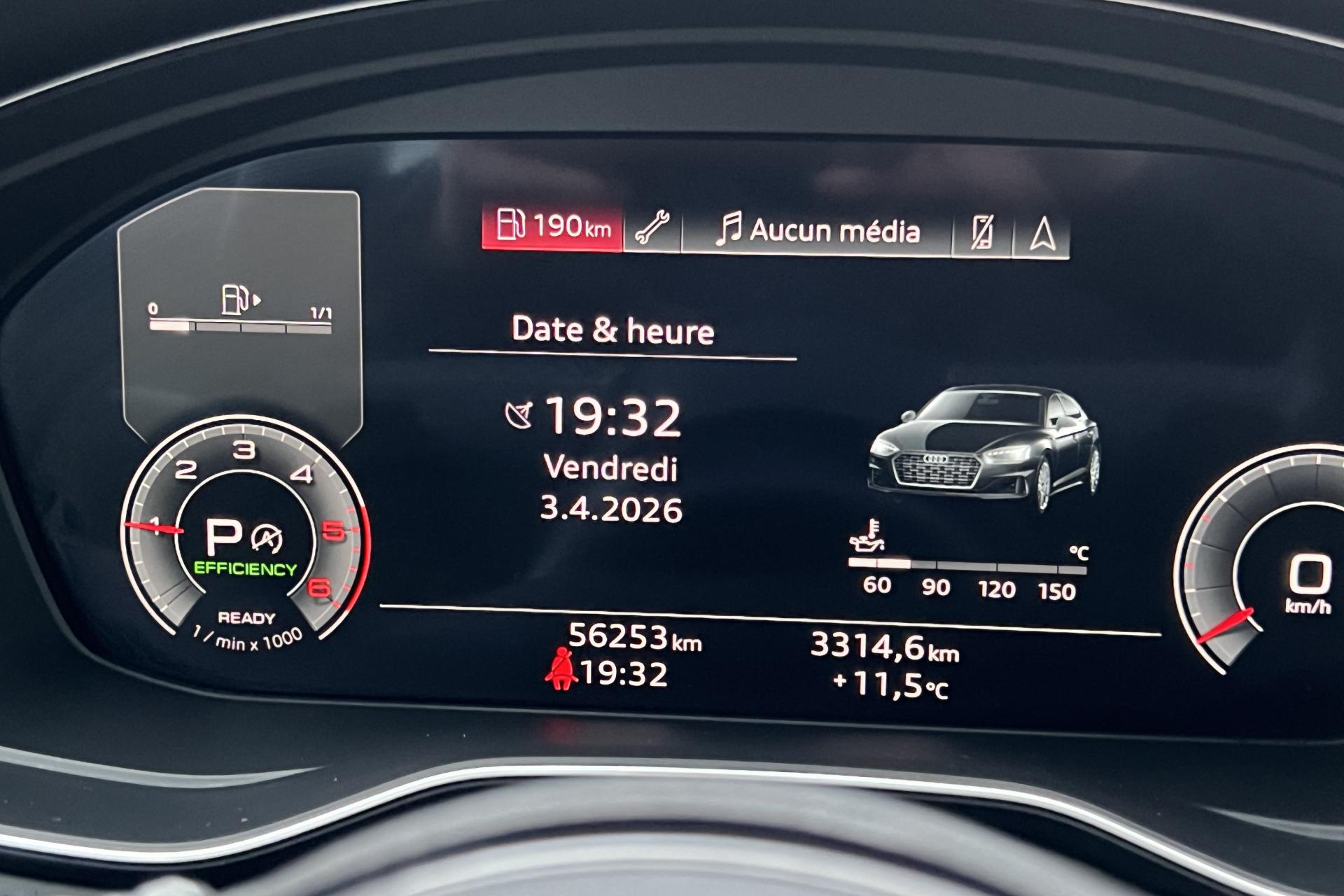 Cette Audi A5 Sportback S Line séduit immédiatement par sa silhouette racée et son positionnement premium. Sous le capot, son moteur 2.0 TDI 204 ch associé à la boîte automatique S-Tronic offre une conduite à la fois dynamique, fluide et efficiente.